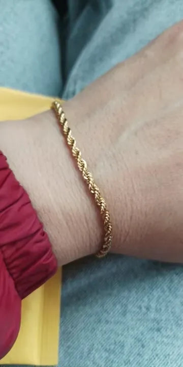 W przeciwieństwie do innych, nasza bransoletka łączy trwałość z elegancją, oferując doskonały blask, który podkreśla każdą stylizację. Jej ponadczasowy wzór łańcuszka linowego jest niezrównany w stylu, czyniąc ją niezbędnym dodatkiem.